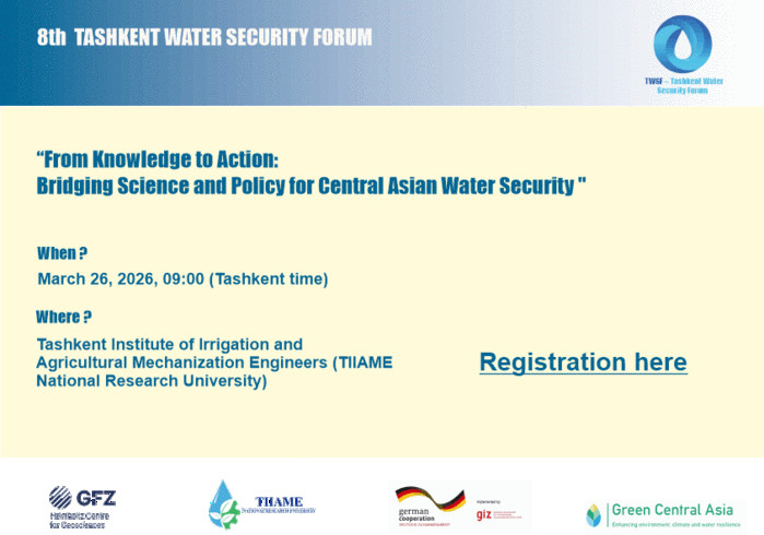 Save the Date : March 26, 2026, TIIAME, Tashkent, Uzbekistan" From Knowledge to Action: Bridging Science and Policy for Central Asian Water Security "