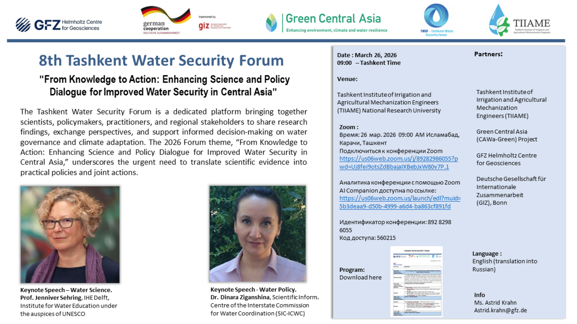 The next edition of the Tashkent Water Security Lectures will be communicated in a timely manner. Interested participants and attendees are encouraged to stay updated by visiting the event page at cawa-project.net and other platforms associated with the Green Central Asia project.